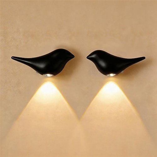 2 luci da parete a LED a tre colori con temperatura regolabile, a forma di uccello, ricarica USB, rilevamento del movimento, senza fili, dimmer magnetico, luce notturna, luce decorativa per soggiorno