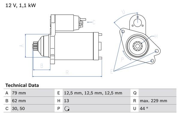 Käynnistin 12V Bosch 0 986 029 110 - audi, seat, skoda, vw - OE 02M 911 021 H, 02M 911 021 HX