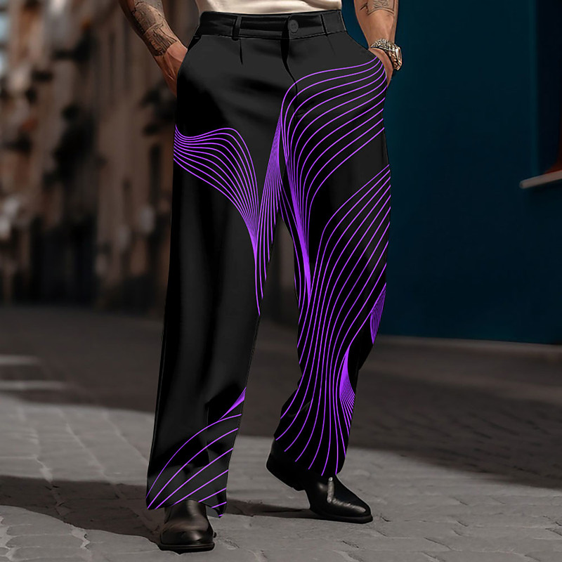 Geometry Business Abstract Men's 3D Print Dress Pants Pants Trousers Outdoor Daily Wear Streetwear Polyester Black White Blue S M L Medium Waist Elasticity Pants