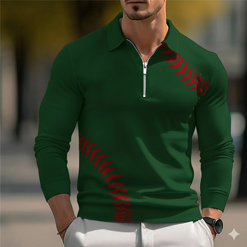 Men's Geometric Polo Long Sleeve Turndown Modern Leisure Sports Outdoor Athleisure Casual Daily Zipper 3D Print Spring Fall Winter White Blue Green