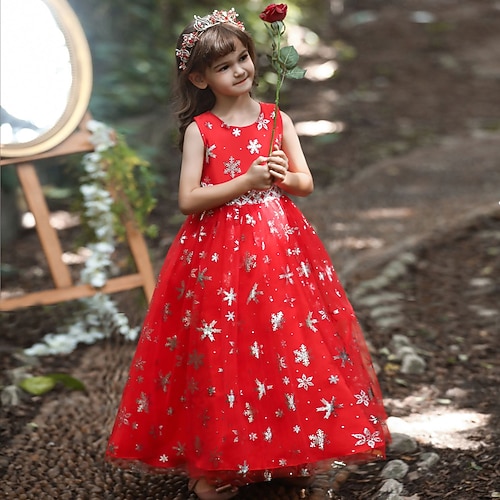 Abito da damigella d'onore bambina Ragazze Abito formale Abiti da sposa Feste Matrimonio Formale Elegante Moda Bello Rete Tinta unica Senza Maniche Girocollo Blu Rosso Dai 4 anni in su