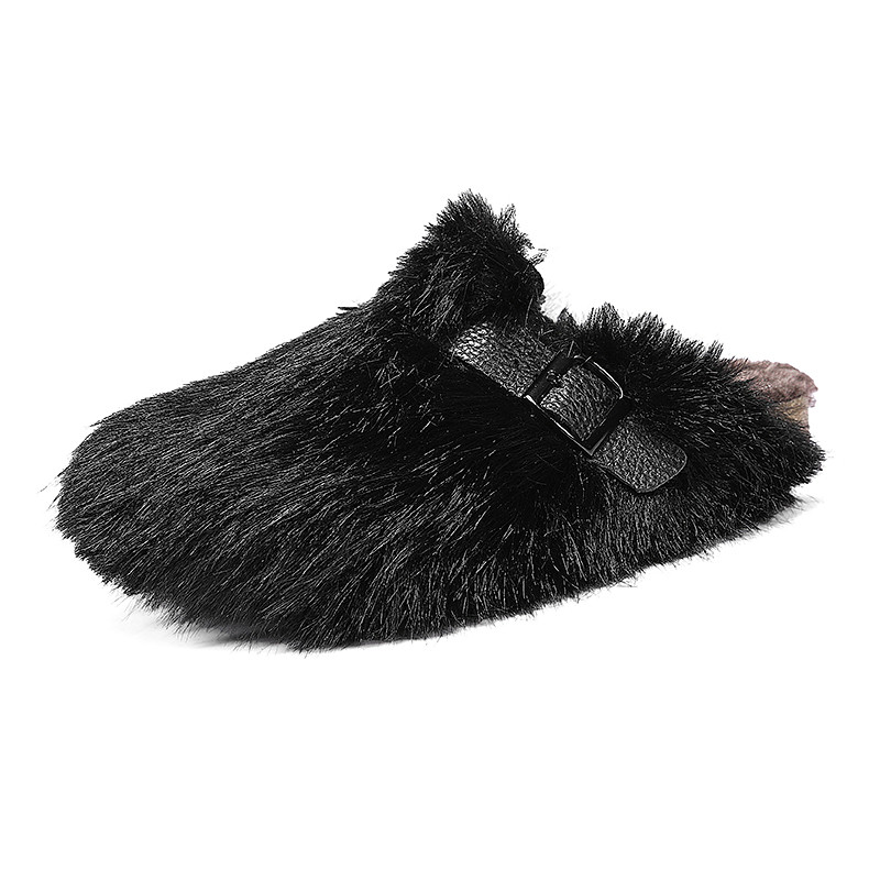 Men's Fur-lined Slippers with Buckle Detail - Cozy Indoor Footwear for Relaxing at Home