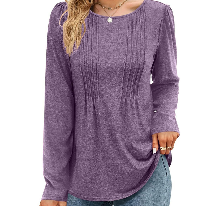 Women's Blouse Solid Color Stylish Casual Long Sleeve Crew Neck Regular Tops Daily Ruched Black Red Purple Brown Beige Summer Spring Fall