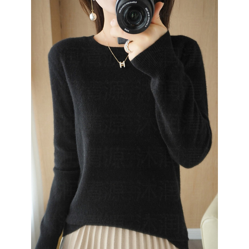 Women's Sweater Casual Soft Pure Color Ribbed Crew Neck Knitted Long Sleeve Regular Tops Knit Outdoor Daily Weekend Black Red Fall Winter
