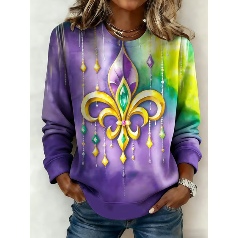 Women's Pullover Sweatshirt Graphic Classic Casual Long Sleeve Crew Neck Regular Tops Party Evening Wear Party Outfits Print Light Purple Fuchsia Dark Purple Spring Fall