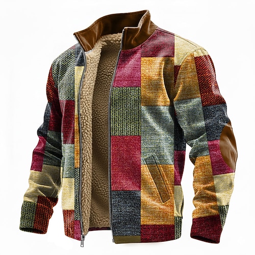 Per uomo Geometrico Plaid Pile Giacca di pelle Felpa Moda Quotidiano Semplice Casual Collo alla coreana Con cerniera All'aperto Vacanza Regalo Uscire Blu Rosso Verde Grigio Tasca Cerniera frontale
