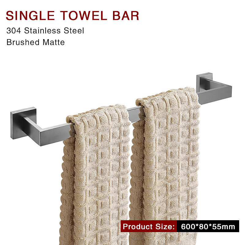 Bathroom Hardware Accessories Stainless Steel Wall Mounted Brushed Nickel Towel Bar Hand Towel Holder Toilet Paper Holder Robe Towel Hook Coat Hook Towel Bar (Silver)
