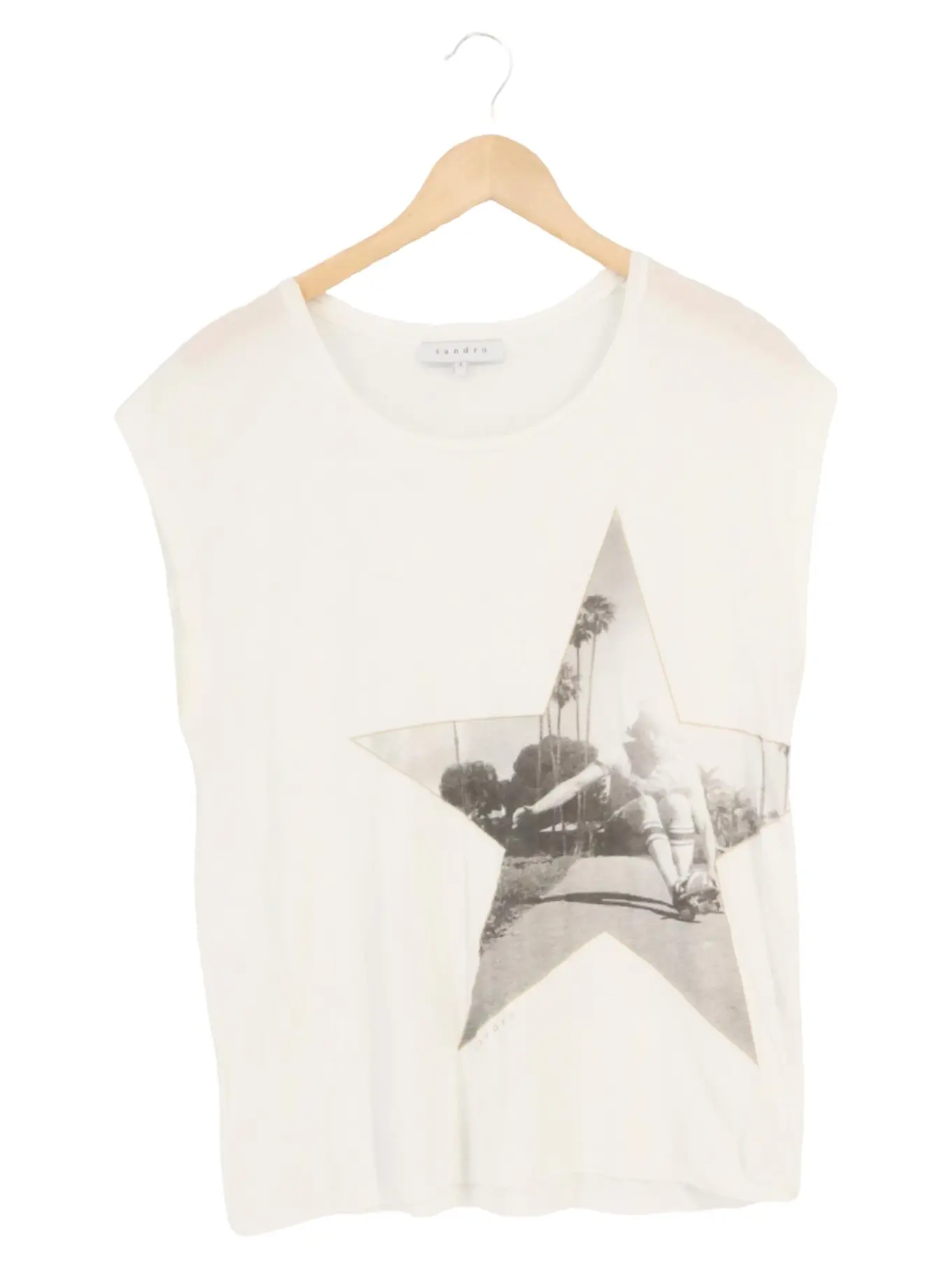 SANDRO Damen T-Shirt Weiß Sternenmotiv Gr. 36 Casual Look