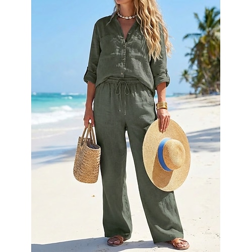 Per donna Set di biancheria in cotone Set di Pantaloni Bolero Top Manica Lunga Scollo a V Semplice Coulisse Moda Streetwear Quotidiano All'aperto Spiaggia Nero Bianco Giallo Estate Vestibilità comoda