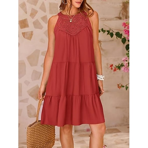 Per donna Mini Abito Abito a trapezio Abito Estivo Casual Quotidiano Vestibilità comoda Semplice Senza Maniche All'americana Blu blu navy Bianco Rosso Estate