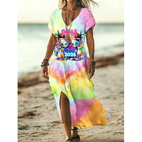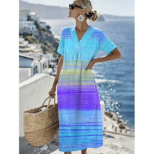 Per donna Abito Midi Abito a Tubino Vestito Estivo Vacanza Casual Spiaggia Quotidiano Uscire Vestibilità comoda Ombre Grafico Manica Corta Scollo a V Blu Rosa Viola Arancione Estate Primavera