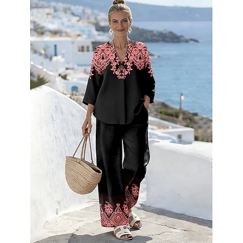 Per donna Set da due pezzi Set di Pantaloni Bolero Manica 3/4 Scollo a V Grafico Geometrico Stampato Quotidiano Elegante Casuale Quotidiano Vacanza Blu Bianco Rosa Estate Vestibilità comoda
