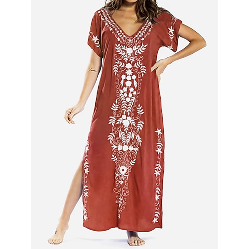 Per donna Abito Midi Abito Floreale Abito Stampato Moda Moderno All'aperto Vacanza Uscire Vestibilità comoda Floreale Manica Corta Scollo a V Blu Verde chiaro Verde militare Rosso Estate Primavera