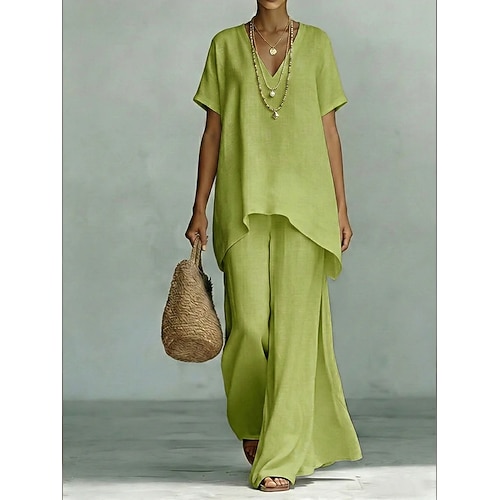 Per donna Set di biancheria in cotone Set di Pantaloni Manica Corta Scollo a V Tinta unica Elegante Moda Streetwear Casuale Quotidiano All'aperto Blu Nero Bianco Estate Vestibilità comoda