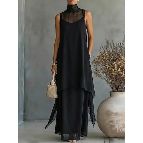 Per donna Abito Midi Vestito in Chiffon Vestito da Festa Abito da Cocktail Abito da invitata a nozze Elegante Moda Moderno Spiaggia Festa serale Feste Vestibilità comoda Semplice Senza Maniche