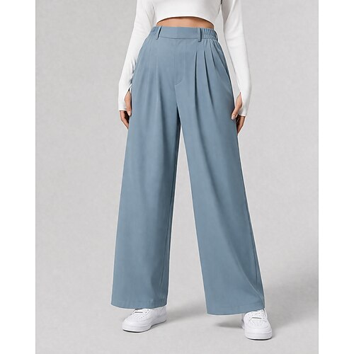 Per donna Nido d'ape Gamba larga Chinos Vacanza Lunghezza intera Vita Alta Comodità Micro-elastico Quotidiano Blu Verde translucido Aalbicocca Nero Primavera Vestibilità comoda
