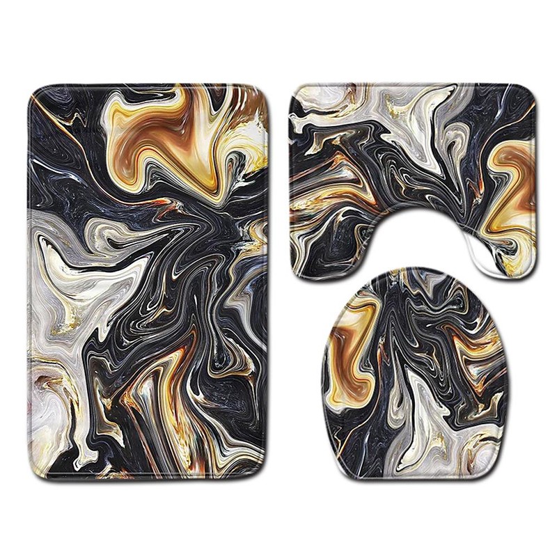 Set of 3 Pieces Bath Mat Non-slip Bathroom Rug, U Shaped Contour Rug Toilet lid Cover, Marble Texture Bath mat, Non Slip Soft Absorbent Polyester Carpet