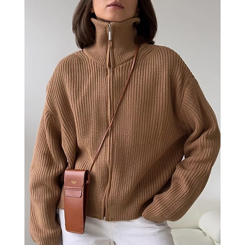Per donna Felpa Cardigan Streetwear Casual Tinta unica Collo alla coreana Cerniera Lavorato a maglia Manica Lunga Top Regolari Maglia Quotidiano Ferie Uscire Nero Rosso Autunno Inverno