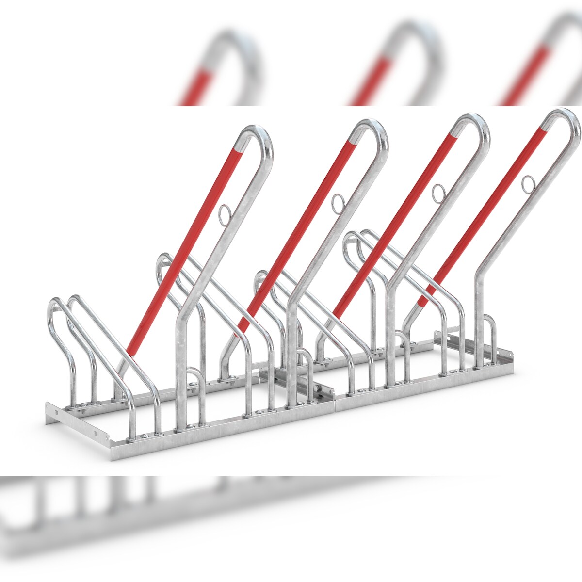 Anlehnparker 2504 einseitig | Fahrradständer für 4 Fahrräder | erweiterbar zur Freiaufstellung | Abwechselnde Hoch-/Tiefeinstellung | mit Anlehnbügel