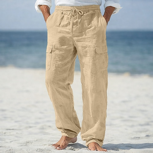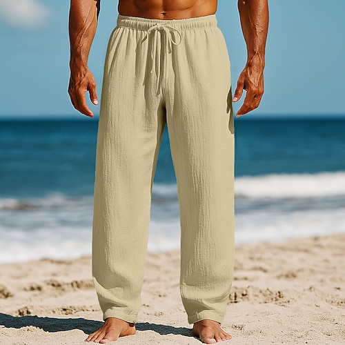 Per uomo Pantaloni di Lino Pantaloni Pantaloni Estivi Pantaloni da Spiaggia Coulisse Elastico in vita Gamba Dritta Semplice Comodità Traspirante Lunghezza intera Casuale Quotidiano Ferie Vacanza Moda