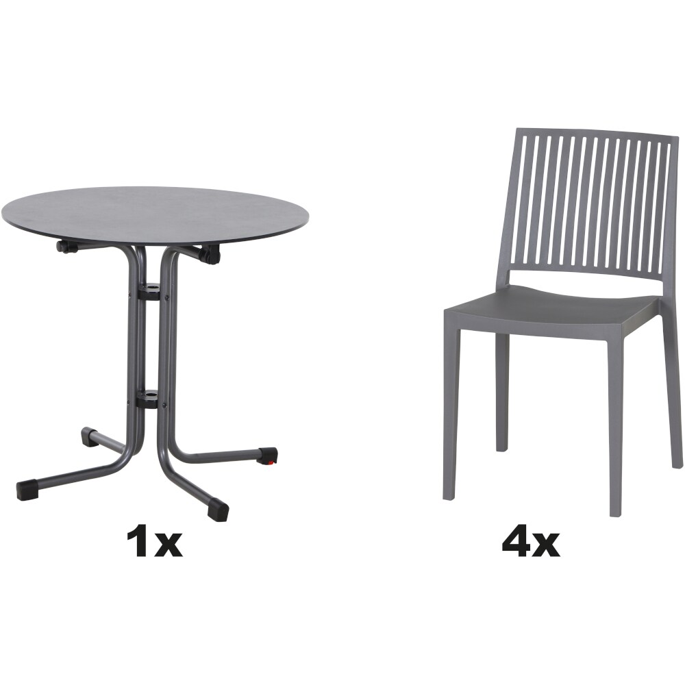 SIENA GARDEN Urban Lights Set 5teilig Lane Stuhl gastrotauglich grau mit Tisch Sola Ø80
