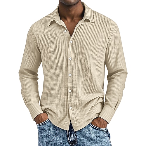Per uomo Camicia Tessuto Camicia casual Camicia con Bottoni Nero Bianco Vino Blu marino Azzurro cielo Manica Lunga Semplice Bavero Casuale Quotidiano Abbigliamento Elegante Moda Casual