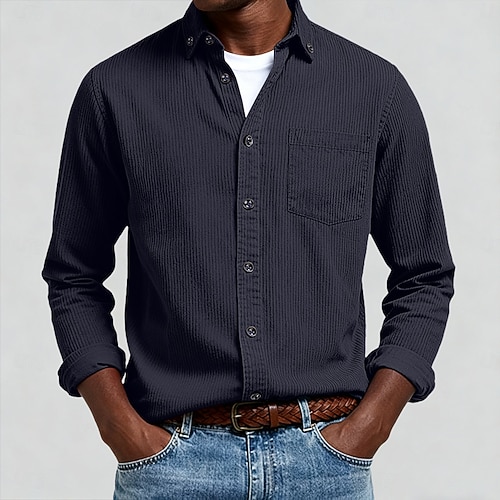 Per uomo Camicia Camicia button-down Camicia di Velluto a Coste Sopracamicia Blu Giallo Rosso Blu marino Verde Manica Lunga Semplice Bavero Casuale All'aperto Tasca Frontale Abbigliamento Moda