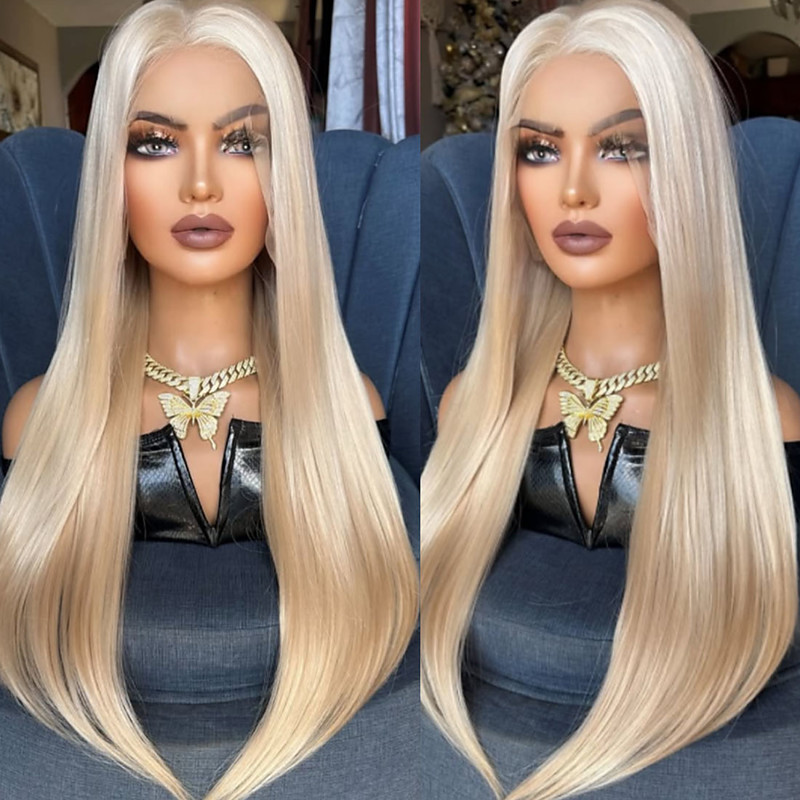 Brazilian 100% Virgin Unprocessed Hair 5x5 Lace Closure Wigs Straight Ash Blonde 13x4 Lace Front Human Hair Wig with Baby Hair Natural Hairline Glueless For Women