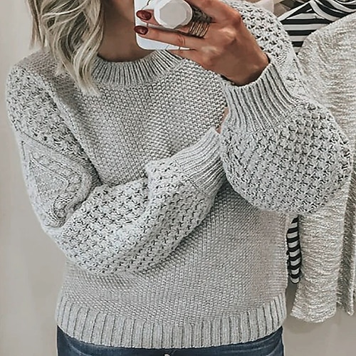 Per donna Felpa Maglione Streetwear Casual Floreale Girocollo Lavorato a maglia Manica a Lanterna Manica Lunga Top Regolari Maglia Quotidiano Ferie Uscire Nero Bianco Autunno Inverno