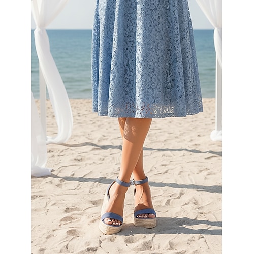 Braune Espadrille-Sandalen mit Keilabsatz und Knöchelriemen für Damen, elegante Brautjungfernschuhe im Strandstil für eine Hochzeit am Meer