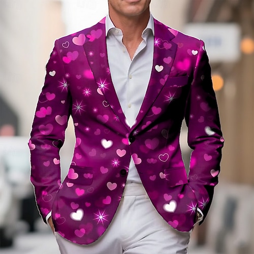 Valentinstag Herren Herz Blazerjacke Mantel Mode Bequem Atmungsaktiv Künstlerisch Lässig Täglich Party-Abendmode Festival 3D-Druck Knöpfe Mehrere Taschen Frühling Herbst Winter Fallendes Revers