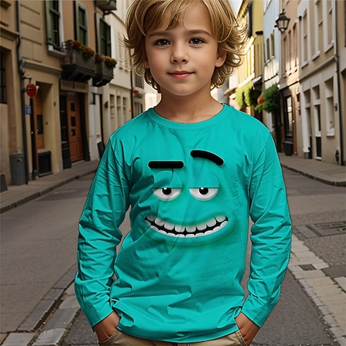 Halloween Ragazzi 3D Teschio Maglietta Manica Lunga Primavera Autunno Moda Essenziale Bambini 4-12 Anni Girocollo All'aperto Casuale Quotidiano Vestibilità regolare