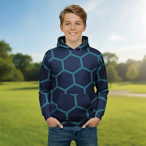 Jungen 3D Grafik Geometrisch Kapuzensweatshirt Langarm Frühling Herbst Mode Streetwear Kinder 4-12 Jahre Mit Kapuze Outdoor Lässig Täglich Normale Passform
