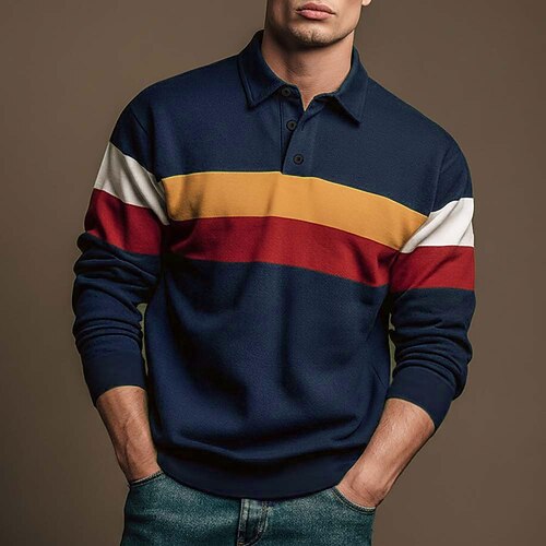 Herren Horizontale Streifen Rugby-Poloshirt Langarm Polo-Shirts Hemden mit Kragen Lässig Outdoor Athleisure 3D-Druck Frühling Herbst Blau Rote Braun