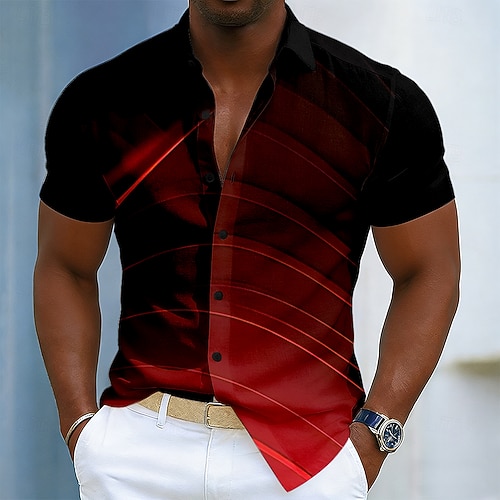 Herren Geometrisch Farbverlauf Abstrakte Kunst Hemd Sommerhemd Knopfhemd Kurzarm Modisch lässig Outdoor Urlaub Alltagskleidung Sommer Umlegekragen 3D-Druck Leinenähnliches Hemd Rote Blau Grün Grau
