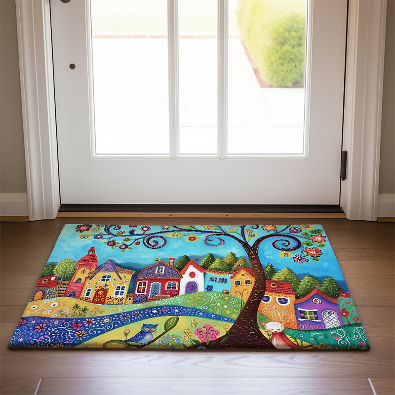 Colorful Houses Doormat Floor Mats Washable Rugs Kitchen Mat Non-Slip Oil Proof Rug Indoor Outdoor Mat Bedroom Decor Bathroom Mat Entrance Rug