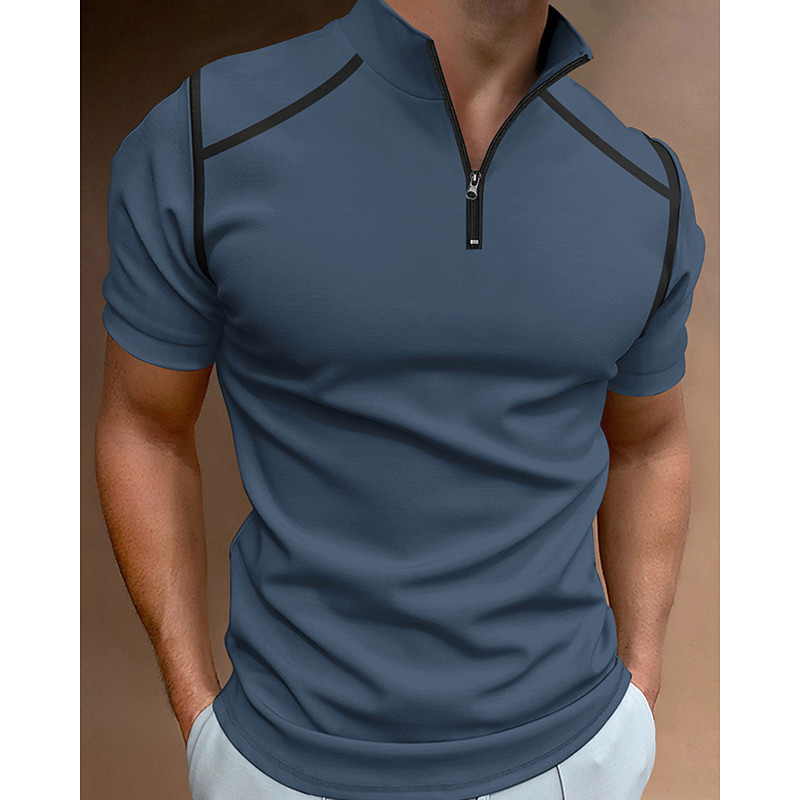 Men's Zip Polo Textured Vacation Casual Lapel Quarter Zip Short Sleeve Fashion Basic Plain Ribbed Quarter Zip Summer Slim Fit Light Blue White Navy Blue Gray Zip Polo