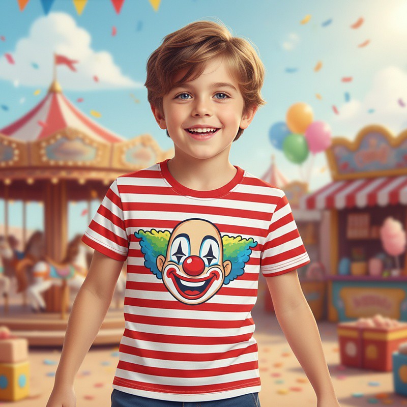 Carnival Costume 2026 Boys' 3D Striped Clown T shirt Tee Short Sleeve 3D Print Summer Spring Sports Fashion Streetwear Kids 4-12 Years Crew Neck Casual Daily Outdoor Regular Fit