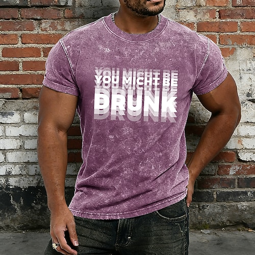 Vintage-T-Shirt für Herren mit Acid-Wash-Effekt und dem Aufdruck „Du könntest betrunken sein" – lustiges Trink-Shirt mit Doppelsicht-Motiv aus Baumwoll-Polyester-Mischgewebe (Mineral Wash) – Größen