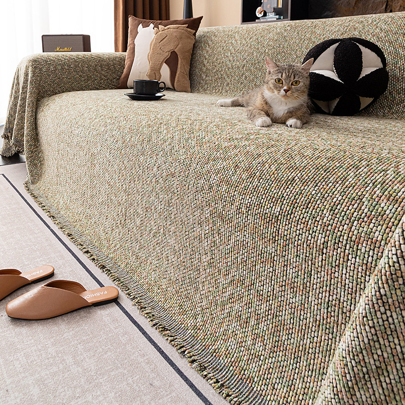 Colorful Chenille Couch Cover for Pets, Pet Friendly All-Season Non-Slip Sofa Throw Blanket, Anti-Scratch Full-Cover Sofa Protector with Backrest, Modern Simple Style for Living Room