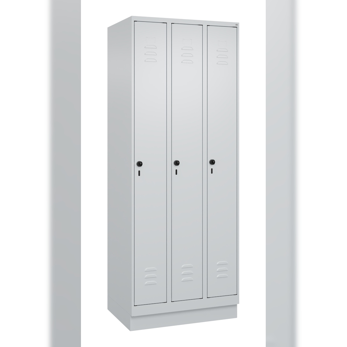 C+P Spind Classic PLUS, Sockel, 3 Abteile, HxBxT 195x75x50cm, Sicherheitsdrehriegel, Hellgrau/Hellgrau von PROREGAL