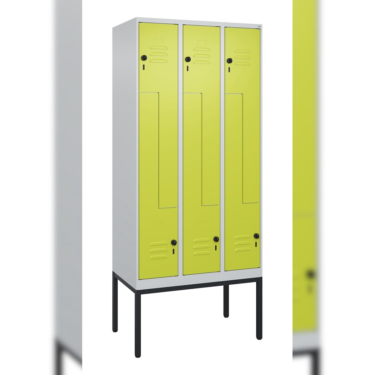 C+P Doppel-Spind Classic PLUS, Füßen, 2 Abteile, HxBxT 195x80x50cm, Sicherheitsdrehriegel, Hellgrau/Clowngrün von PROREGAL