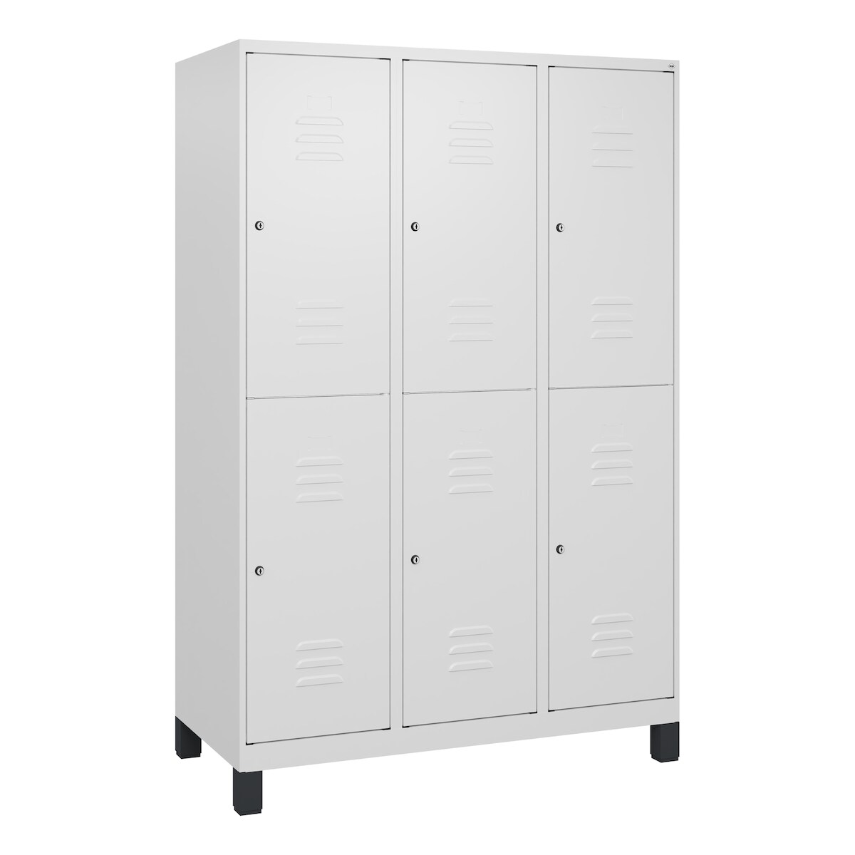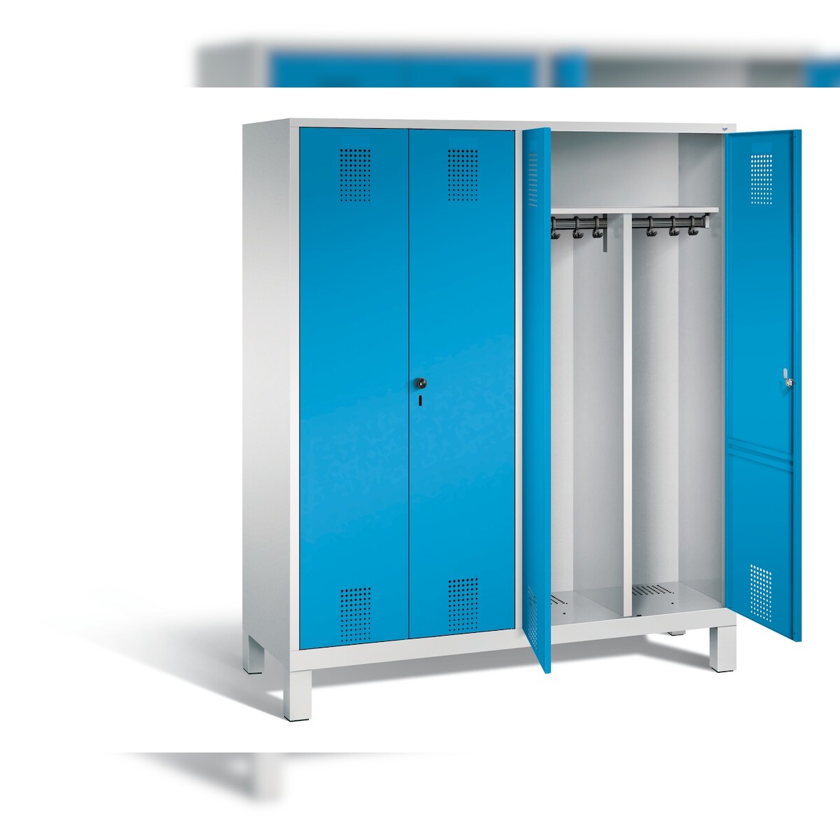 C+P Spind Classic PLUS, Füßen, 3 Abteile, HxBxT 195x120x50cm, Zylinderschloss, Hellgrau/Lichtblau von PROREGAL