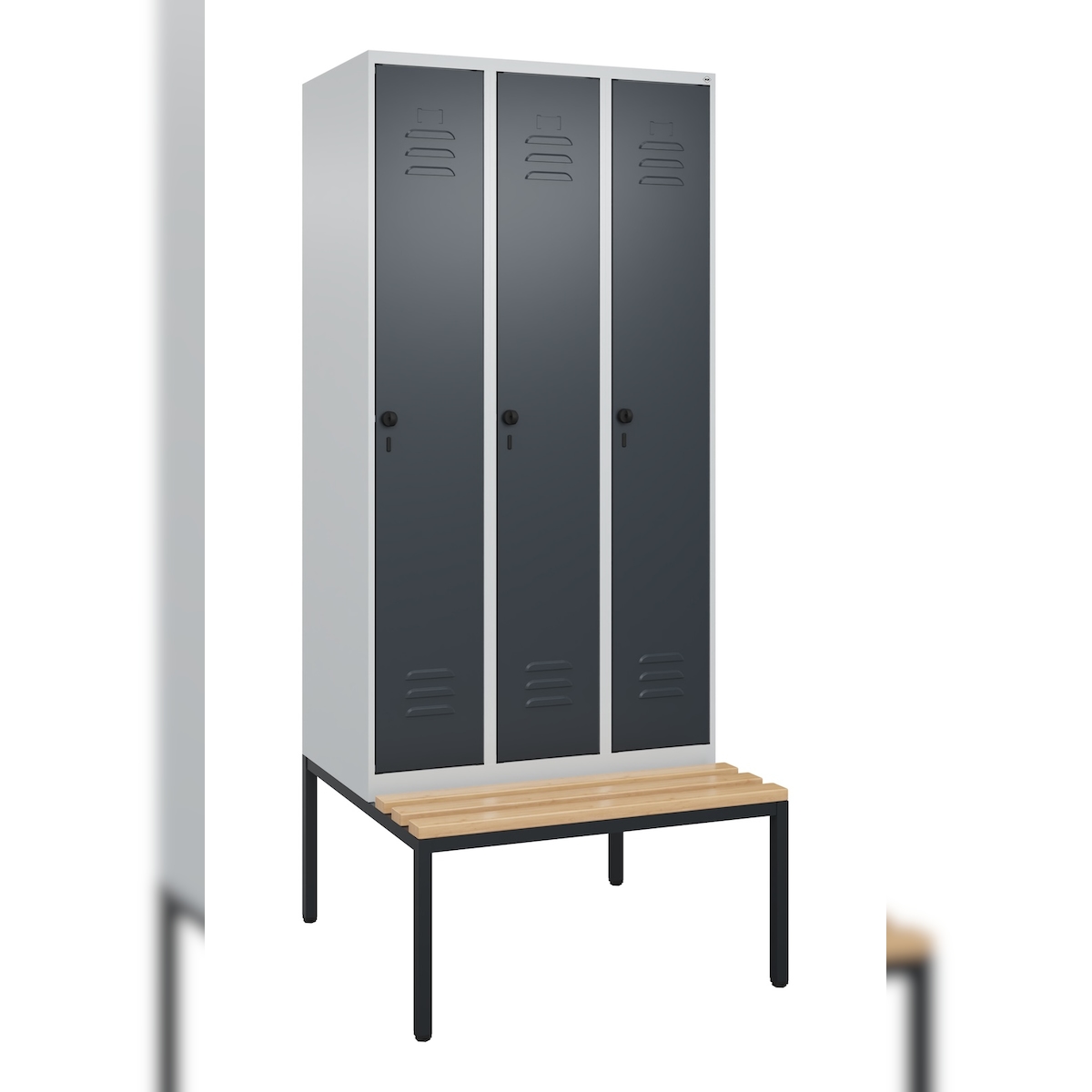 C+P Spind Classic PLUS, Bank, 3 Abteile, 2120x1200x815mm, 7016/7035