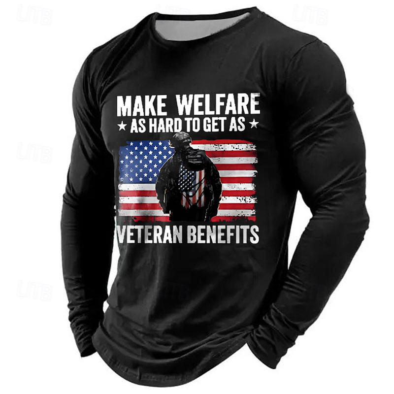 US America 250 Year Anniversary Veterans Day Men's Patriot Patriotic Veteran American US Flag Patriotic T shirt Long Sleeve T shirt 3D Print Crew Neck Shirt Casual Street Casual Daily Black