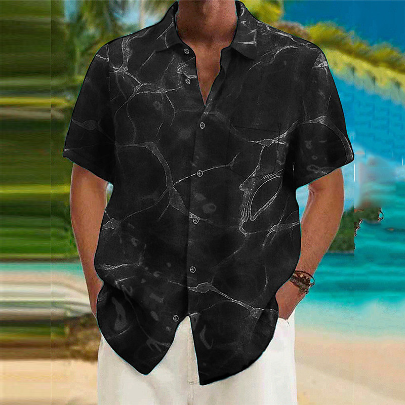 Men's Waves Crack Shirt Summer Hawaiian Shirt Aloha Shirt Short Sleeve Shirt Turndown Artistic Abstract Outdoor Street Casual Daily Black White Yellow S M L