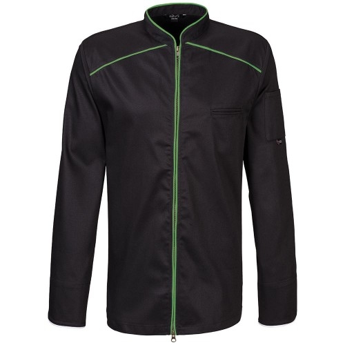 Exner 220 - Kochjacke langarm, 2-wege RV, Fb. schwarz mit farbiger Paspel : lemon green 65% Polyester 35%Baumwolle 220 g/m² 2XL