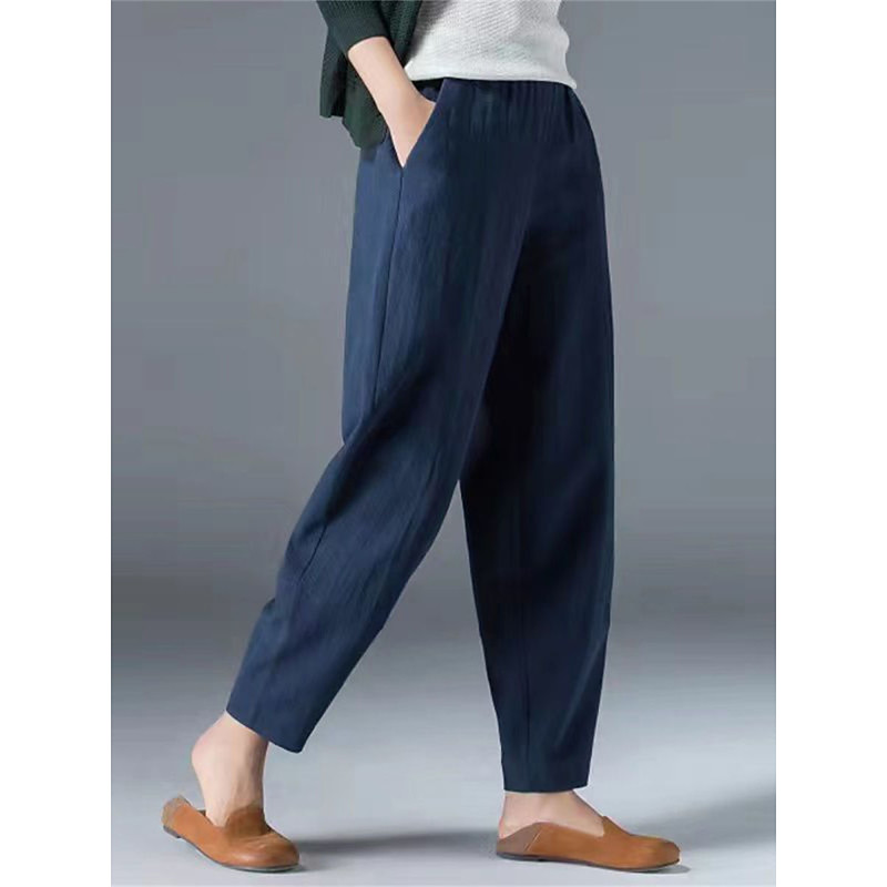 Women's Cotton Linen Pants Bloomers Baggy Pants Streetwear Simple Casual Ankle-Length Mid Waist Plain Pocket Elastic Waist Baggy Soft Outdoor Comfortable Micro-elastic Outdoor Vacation Casual Daily