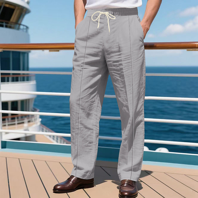 Men's Linen Pants Trousers Baggy Pants Beach Pants Drawstring Pocket Multi-pack Plain Comfort Breathable Full Length Daily Vacation Stylish WhiteBlackKhaki BlueKhakiRed Inelastic