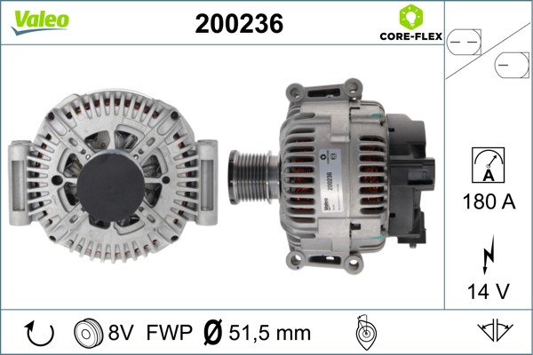 Laturi 14V 180A Valeo Valeo core-flex 200236 - mercedes-benz - OE 6421540502, A6421540302, A6421540502